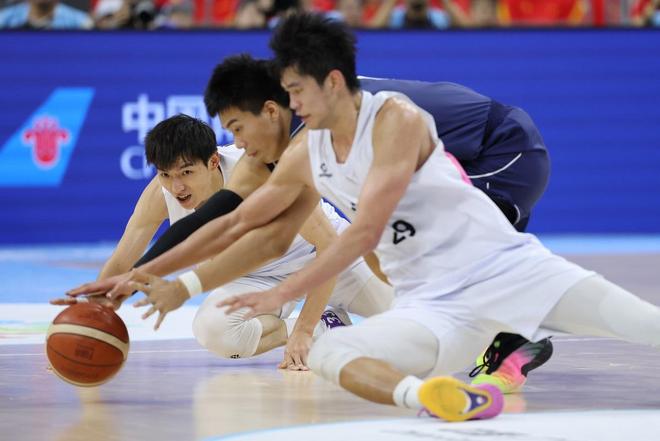 11月12日,广东队球员赵睿(中)防守浙江队球员陆文博(右一)。中国日报记者 魏晓昊 摄